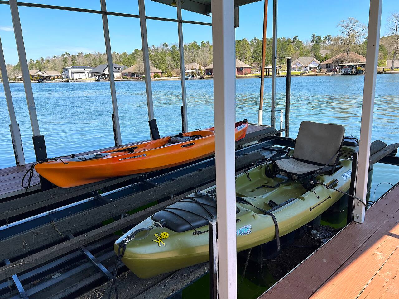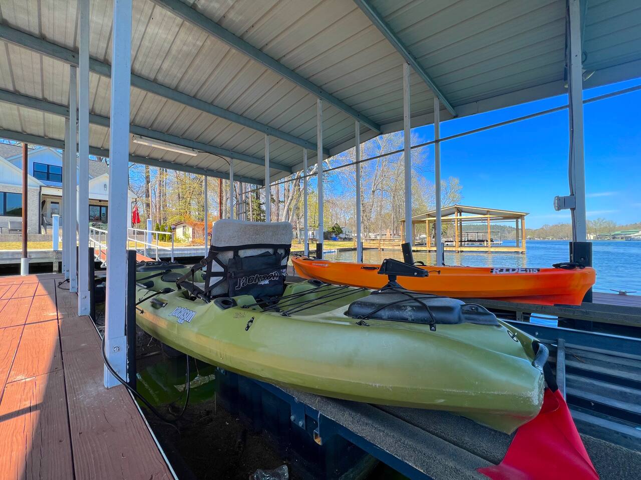 Our road is a very narrow road. For that reason there is no street parking allowed. Please park in the one car garage or one of the three spots available in the driveway, (4 cars MAX). The one-car garage must be accessed from inside when you check-in. You may use the garage door opener button on the wall next to the door to open it, and then park one of your vehicles inside. This is a two story house. The kitchen, living room, primary bedroom and 1.5 bathrooms are all on the first floor as well as the garage. The furnished backyard patio, boardwalk and boat dock with swim ladder are also. However, 3 of the 4 bedrooms must be accessed by stairs, which may be difficult for guests with limited mobility. Your safety matters. This property features a Ring Doorbell device with an exterior security camera facing the front outdoor entry and the backdoor entry facing the boat dock. The cameras do not look into any interior spaces. The cameras actively record video when motion is detected by the device (including devices linked to the camera such as the alarm systemβs motion detector) or when the video doorbell button is pressed. We provide complimentary propane for using the grill during your stay. If your tank runs out of gas there are additional tanks on the side of the house. Please let the host know if you run out. Thank you! This lake house is on a very sensitive septic system. ONLY toilet paper can be flushed. We provide plenty of septic safe toilet paper for your stay. No bleach products may be used when doing laundry. Thank you for your understanding. **IMPORTANT LAKE INFORMATION** 1. From November 1st - March 15th they lower the water level of Lake Hamilton so people can more easily do work on their sea walls and docks. Because we are on the deep water of the main channel, you will still have water access, but it will look slightly different than the pictures on the listing. The gangway down to the floating dock becomes steeper with the lower water level. Please be very careful when accessing the dock. Use at your own risk. 2. We do provide beach towels and life jackets. For your family's safety, be certain that they fit very well - especially for children and non-swimmers. Arkansas law requires life vests for all boaters. Children 12 and under must wear the vest at all times on the water. 3. Use our kayaks at your own risk. Always wear a life jacket. Check out our house rules for more info. Guests will receive use instructions and route suggestions.