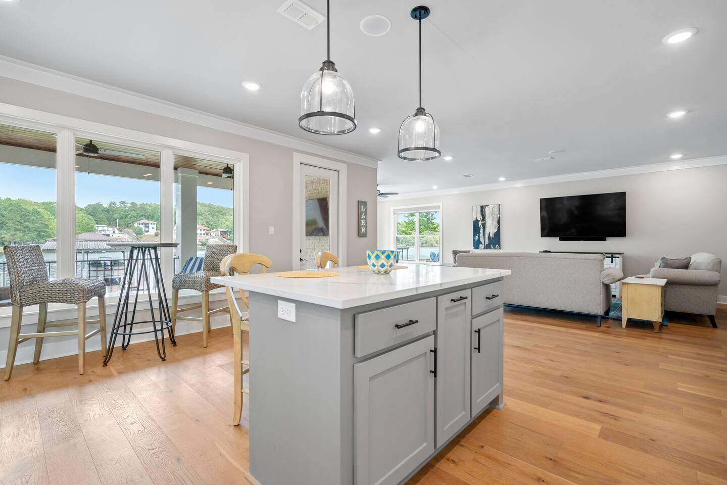 This peaceful lakefront home is on the most pristine part of lake Hamilton. It is an ideal place to take in the beautiful waterfront via kayak or from our comfortable back patio. It would be near impossible to find this kind of serenity in town, yet we are only 11 miles from the National Park and 12 miles from Oaklawn Horse Racing and Casino. Why Your Family Will Love Staying Here: β’ πΆ Lake Hamilton waterfront living at its finest with 2 patios (covered & uncovered), a swim dock and kayaks, sun loungers, grill, outdoor dining & Outdoor HD TV. π£ β’ π©π½βπ³ Gorgeous modern open-concept chefβs kitchen w/ lake views & stand out amenities such as a stand-alone icemaker, breakfast bar, instapot, spices & more. π½ β’ π Spacious modern bathrooms with large walk-in showers and a full size soaking tub so you can enjoy a soak without the crowds on bathhouse row. πΏ β’ π‘ Large game room with a poker table, board games, books and a HD flatscreen TV for movie night. βοΈ β’ π Breathtaking views of Lake Hamilton and the Ouachita river | Lots of beautiful wildlife | Epic sunrises and sunsets | Excellent Star Gazing π β’ β‘οΈ High Speed Internet β Fast, reliable Wi-Fi for streaming or remote work. π» β’ π The peace and tranquility of Arkansas lake living while still only being 12 miles from Hot Springs National Park & Oaklawn racing & casino. π Experience the luxury of a clean, uncluttered and brand new 2022 lakeside gem with the laid back country vibe of a rural Arkansas lake neighborhood. There are breathtaking views of the Ouachita River as it flows into Lake Hamilton from the open concept kitchen, dining and living room. Whether you enjoy fishing from the dock, kayaking, grilling lakeside while watching your favorite team, playing a game on the poker table in the media room, or rejuvenating with a long soak in the soaking tub - The Casa Royale has something for everyone in your family. Those who wish can rent a boat from one of our great local marinas and tie it up on the side of our dock. We provide life jackets and also basic fishing gear. If you wish to bring your own boat please reach out to the host ahead of time to discuss details. There is limited parking availability at the house and boats must be launched at the neighborhood boat launch. The home itself has gorgeous hardwood floors and the decor is as beautiful as it is comfortable. There are local influences including original paintings of local artists from the Artistβs Workshop on Bathhouse Row. The house has a built-in indoor and outdoor sound system and 70β HD flat screens in the living room and upstairs game room as well as a 65β on the covered outdoor lakeside lounge. You will love the care and extra touches that have been put into this house. The primary bedroom has a luxury ensuite with a double sink, beautifully tiled walk-in shower and a very deep soaking tub that is sure to melt your worries away. The upstairs queen has a small private office space and gorgeous lake views. The kids will love our custom built-in twin bunks in the bunkroom. The fourth bedroom has been turned into a game room with a poker table and large flat screen. It has a super comfortable queen sleeper sofa. Clean bedding is kept in a zipper bag in the closet. All the bedrooms and bathrooms have blackout shades on the windows. The modern kitchen is fully stocked with everything you will need to cook up your favorite feast. There is a central island with a breakfast bar, an electric range, stand-alone ice machine, Instapot with air-fryer, a blender, a Keurig coffee maker and a regular coffee maker with coffee provided. We also provide creamer, sweetener, oil and some spices. The house itself is quite a contemporary haven, but the waterfront spaces of the Casa Royale are what set it apart. It will be hard to resist taking refuge on the two levels of back patios or the boardwalk as you watch the flocks of ducks, geese, and herons that often visit. Commonly in the morning there is an enchanting mist over the water. We have much cooler water temperatures for swimming in the heat of the summer because we are closer to Blakely dam. There is often a comfortable breeze that comes off of the lake. Feel free to swim from the swim ladder or fish on your private boat dock. We provide a few fishing poles and a small tackle box. Those in the mood for some exercise and adventure will enjoy taking our two kayaks out to see what treasures the lake has in store for you. Or if you prefer, kick back and relax on the outdoor sofa and watch your favorite team play on the 65β flat screen on the covered back porch. Sunbathe or enjoy a good book on the chaise lounges provided. Grill up your favorite cuisine on our gas grill, (propane provided). There are many great local marinas which you can rent pontoon or ski boats from for a day or a half-day. **IMPORTANT LAKE INFORMATION** 1. From November 1st - March 15th they lower the water level of Lake Hamilton so people can more easily do work on their sea walls and docks. Because we are on the deep water of the main channel, you will still have water access, but it will look slightly different than the pictures on the listing. The gangway down to the floating dock becomes steeper with the lower water level. Please be very careful when accessing the dock. Use at your own risk. 2. We provide beach towels and life jackets. For your family's safety, be certain that they fit very well - especially for children and non-swimmers. Arkansas law requires life vests for all boaters. Children 12 and under must wear the vest at all times on or near the water. 3. Use our kayaks at your own risk. Always wear a life jacket PFD. Check out our house rules for more info. Guests will receive use instructions and route suggestions. **GRILL INFO** We provide complimentary propane for using the grill during your stay. If your tank runs out of gas there are additional tanks on the side of the house. Ple